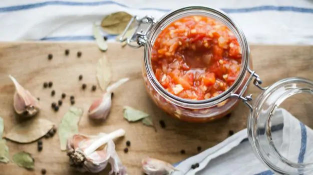 टमाटर को पकाने के बाद गैस को बंद कर दें। ठंडा करने के बाद मिश्रण को जार में डालें और 2 चम्मच इमली और स्वादानुसार नमक डालकर तैयार कर लें।