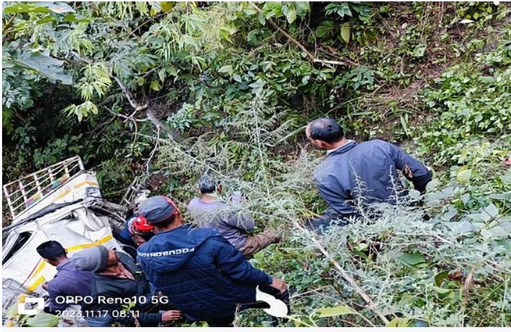 उत्तराखंड में आज सुबह एक बड़ा सड़क हादसा हो गया। नैनीताल के ओखलकांडा ब्लॉक के छीड़ाखान-रीठासाहिब मोटर मार्ग में शुक्रवार की सुबह 8 बजे अधौड़ा से हल्द्वानी को जा रहा कैंपर अनियंत्रित होकर 500 फिट गहरी खाई में जा गिरा। वाहन के खाई में गिरने से 9 लोगों की मौके पर मौत हो गई। साथ ही दो लोग गंभीर रूप से घायल हो गए। घायलों को उपचार के लिए सुशीला तिवारी अस्पताल हल्द्वानी ले जाया गया है।