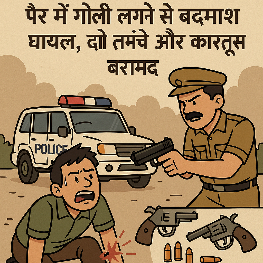 उन्नाव में पुलिस मुठभेड़, पैर में गोली लगने से बदमाश घायल, दो तमंचे और कारतूस बरामद