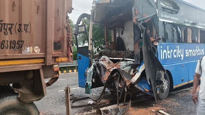 डबर डेकर बस ने ट्रक को मारी टक्कर, चालक की मौत, बस सवार 29 यात्री घायल, चार गंभीर