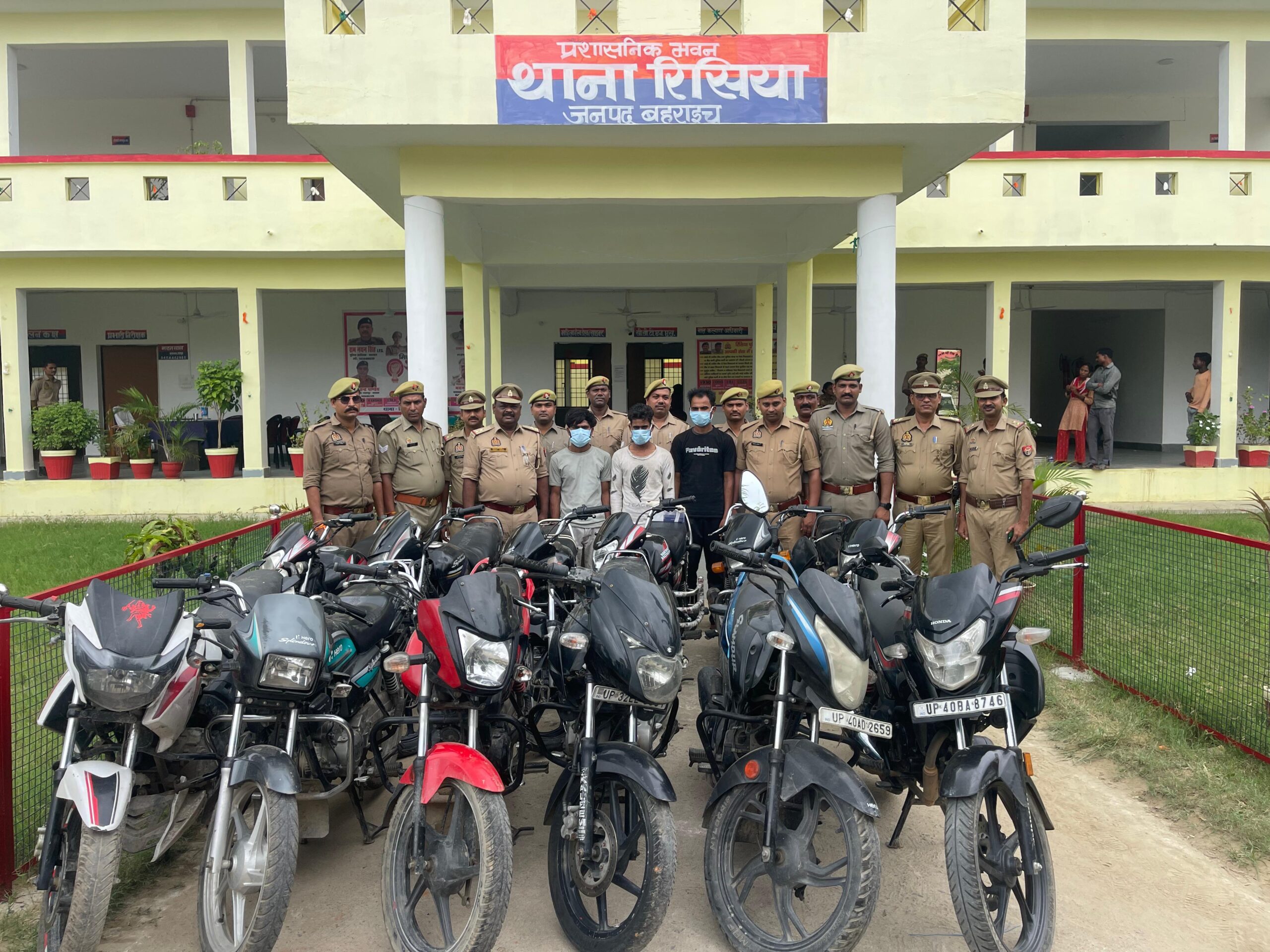 बहराइच: रिसिया पुलिस की बड़ी कार्रवाई, 3 इनामी बदमाश गिरफ्तार – 12 चोरी की बाइक, कट्टा और कारतूस बरामद
