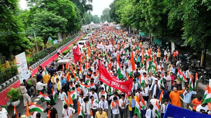 यूपी: सीएम योगी ने की तिरंगा यात्रा की शुरुआत, दोनों डिप्टी सीएम के साथ ली सेल्फी
