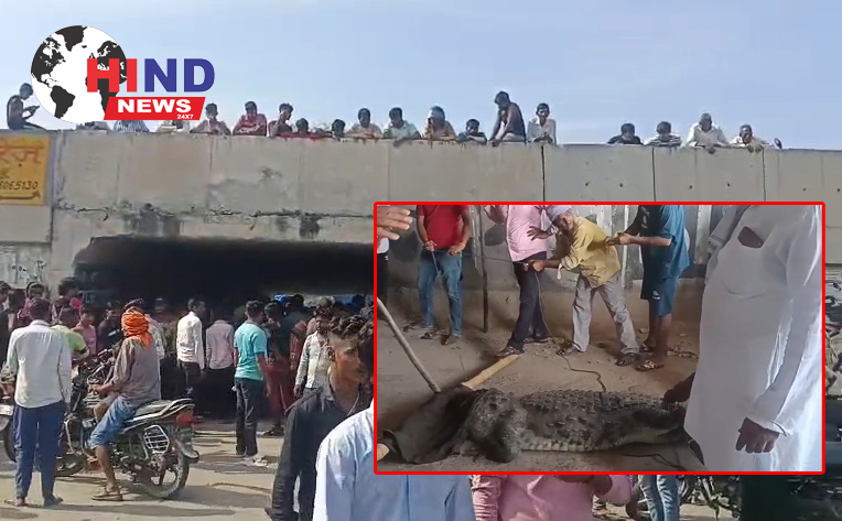 अलीगढ़: अकराबाद क्षेत्र में मंगलवार को हाईवे स्थित नानऊ पुल के अंडरपास पर एक विशाल मगरमच्छ के निकलने से हड़कंप मच गया। स्थानीय लोगों और राहगीरों ने करीब 10 फुट लंबा मगरमच्छ सड़क पर टहलते देखा, जिससे वहां अफरातफरी का माहौल बन गया।