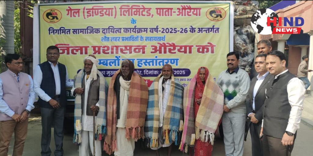 औरैया जिले में बढ़ती सर्दी को देखते हुए गैस अथॉरिटी ऑफ इंडिया लिमिटेड (GAIL) ने एक मानवीय पहल के तहत जिलाधिकारी को 1000 कंबलों का बड़ा कंसाइनमेंट सौंपा। यह कंबल औपचारिक रूप से जिला अधिकारी को एक विशेष गाड़ी के माध्यम से प्रदान किए गए, जिसके बाद प्रशासन ने जरूरतमंदों तक इनकी आपूर्ति की प्रक्रिया शुरू कर दी है।