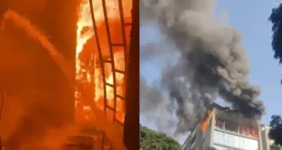 महाराष्ट्र में पुणे शहर के लुल्लानगर इलाके में एक इमारत की सबसे ऊपरी मंजिल पर स्थित रेस्तरां में आग लग गई। समाचार एजेंसी एएनआई की रिपोर्ट के अनुसार आग बुझाने के लिए दमकल की तीन गाड़ियां और पानी के कई टैंकर मौके पर मौजूद थे। मीडिया रिपोर्ट्स के मुताबिक, इस …