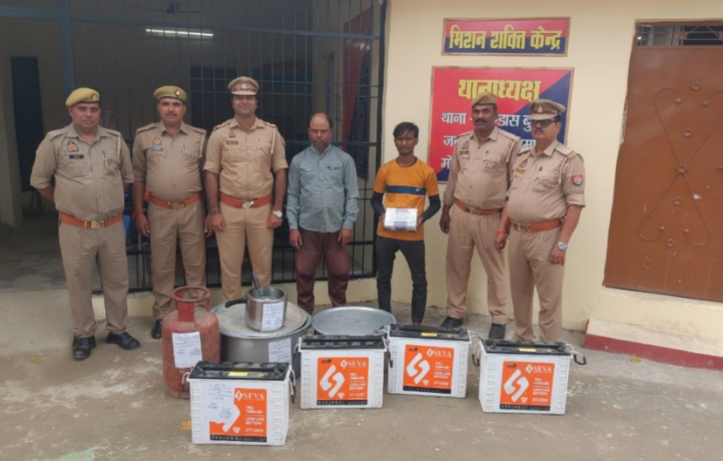 थाना गैंड़ास बुजुर्ग पुलिस ने चोरी की एक बड़ी घटना का खुलासा करते हुए दो शातिर चोरों को गिरफ्तार किया है। पुलिस ने दोनों आरोपियों के कब्जे से बड़ी मात्रा में चोरी गया सामान बरामद किया है, जिसमें चार ट्यूबलर बैटरियां, एक टैबलेट, एल्युमिनियम के भगौने, प्लेटें, स्टील कुकर, घरेलू गैस सिलिंडर और दो ई-रिक्शा शामिल हैं।