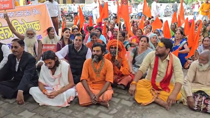 Bulandsahar: अवैध धर्मांतरण के विरोध में सड़कों पर उतरे हिंदूवादी संगठन, हनुमान चालीसा के साथ किया प्रदर्शन