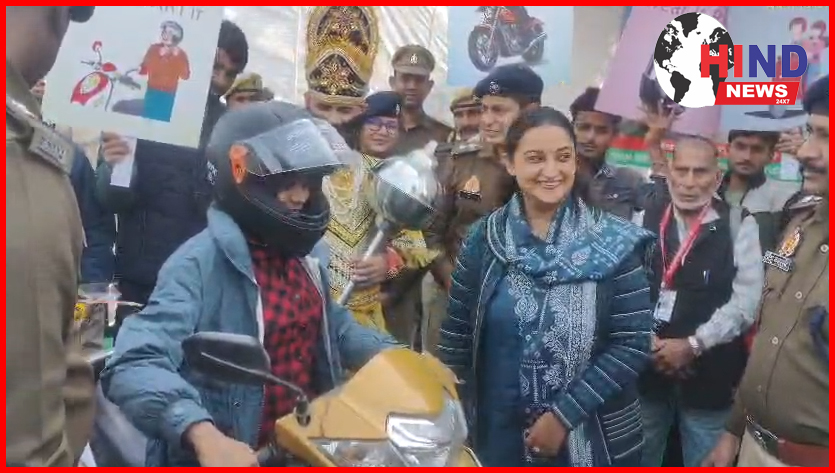 बुलंदशहर में ‘यमराज’ की मौजूदगी में डीएम-एसएसपी ने बाइकर्स को हेलमेट वितरित कर यातायात नियमों की ओर किया जागरूक