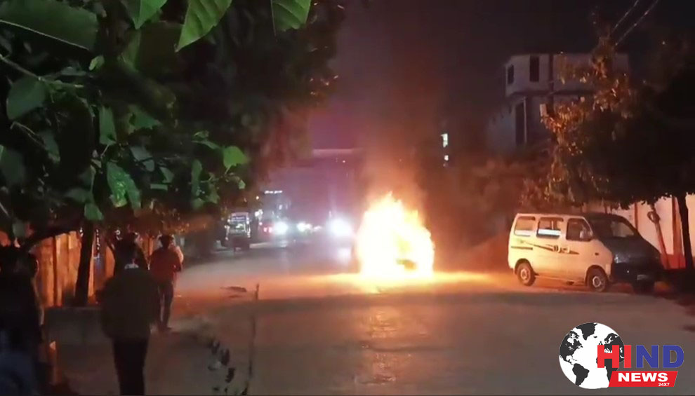 स्थानीय लोगों ने बताया — कुछ मिनटों में कार बनी आग का गोला