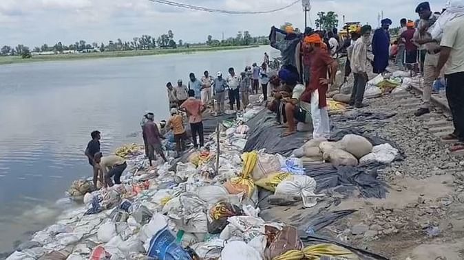 पलिया में अतरिया रेलवे क्रासिंग पर जिस जगह पानी ने कटान शुरू किया था। वहां पर कारसेवा के जरिए रेलवे रिसाव को बंद करने का प्रयास कर रहा है, लेकिन अब तक रिसाव को रोका नहीं जा सका है।