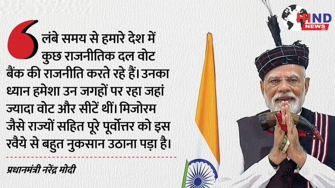 PM Modi Mizoram Visit : प्रधानमंत्री नरेंद्र मोदी ने मिजोरम में विपक्षी दलों पर निशाना साधा। उन्होंने कहा कि लंबे समय से हमारे देश में कुछ राजनीतिक दल वोट बैंक की राजनीति करते रहे हैं। उनका ध्यान हमेशा उन जगहों पर रहा जहां ज्यादा वोट और सीटें थीं, लेकिन हमारा दृष्टिकोण बहुत अलग है। जो पहले उपेक्षित थे, वे अब सबसे आगे हैं। जो कभी हाशिए पर थे, वे अब मुख्यधारा में हैं।