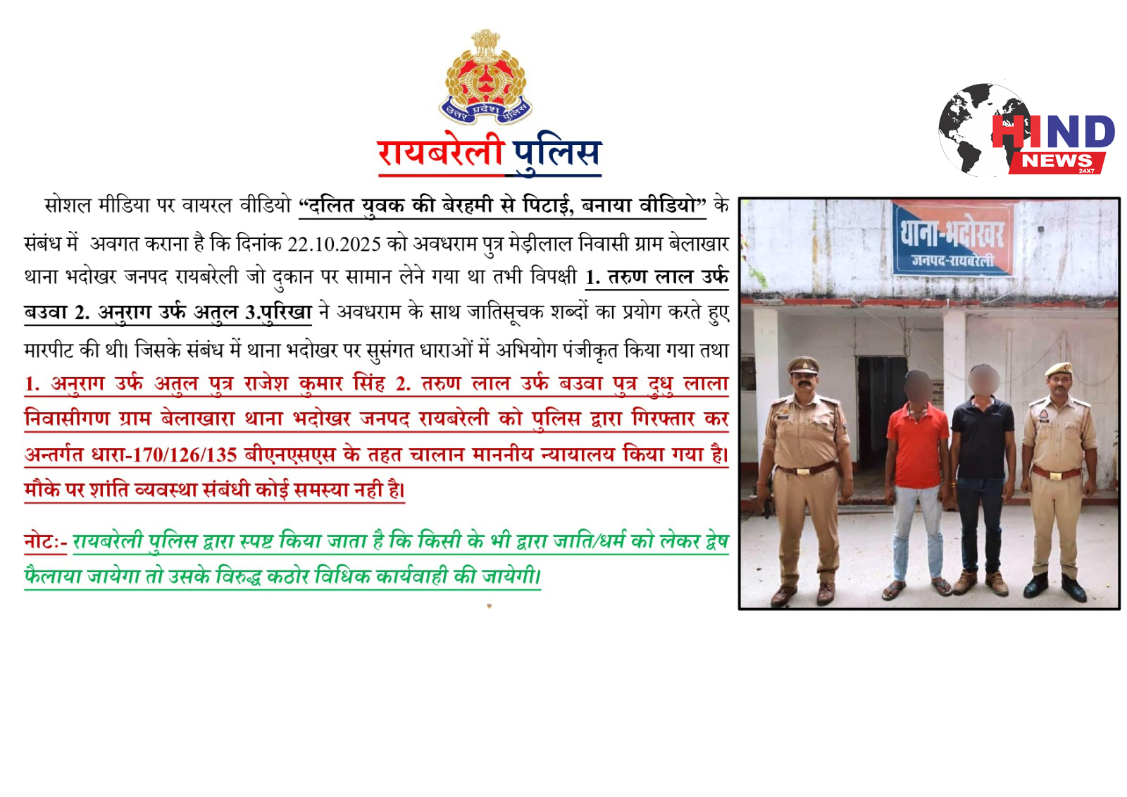 भदोखर थाना क्षेत्र के बेलाखारा गांव में दलित युवक की सरेआम पिटाई का वीडियो सोशल मीडिया पर वायरल होने के बाद पुलिस हरकत में आ गई है। वायरल वीडियो में कुछ युवक एक दलित व्यक्ति को बेरहमी से पीटते और जातिसूचक टिप्पणियां करते हुए नजर आ रहे हैं। घटना के सामने आते ही स्थानीय लोगों में गुस्सा फैल गया और पुलिस प्रशासन पर त्वरित कार्रवाई का दबाव बढ़ गया।
