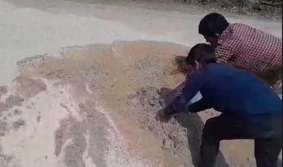 सड़क की बेस परत में रेत-बालू/रेटा को मिलाया जा रहा है, जो सड़क को कमजोर और टिकाऊ नहीं होने दे रहा है।