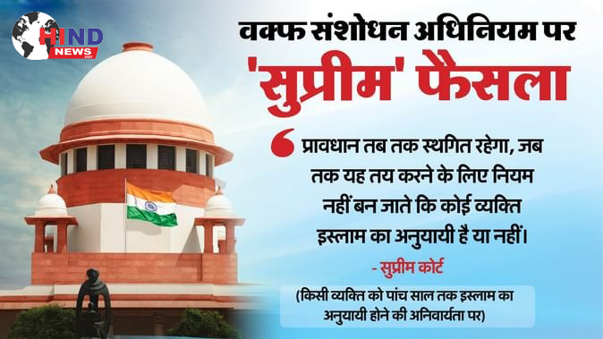 सुप्रीम कोर्ट ने वक्फ (संशोधन) अधिनियम, 2025 के सभी प्रावधानों पर रोक लगाने से इनकार कर दिया है। हालांकि, कोर्ट का कहना है कि कुछ धाराओं को संरक्षण की जरूरत है।शीर्ष अदालत ने सोमवार को वक्फ संशोधन अधिनियम, 2025 को लेकर बड़ा फैसला सुनाया। कोर्ट ने कानून पर रोक लगाने की मांग पर विचार करने से इनकार कर दिया। सुप्रीम कोर्ट ने कहा कि कानून पर केवल दुर्लभतम मामलों में ही रोक लगाई जा सकती है। हमने माना है कि अनुमान हमेशा कानून की संवैधानिकता के पक्ष में होता है। कोर्ट ने यह भी कहा कि राज्य वक्फ बोर्डों और केंद्रीय वक्फ परिषदों में गैर-मुस्लिमों की संख्या तीन से अधिक नहीं हो सकती। अपना फैसला सुनाते हुए कोर्ट ने कहा कि हमने प्रत्येक धारा को दी गई चुनौती पर प्रथम दृष्टया विचार किया है और पाया है कि पूरे कानून पर रोक लगाने का कोई मामला नहीं बनता। हालांकि, सुप्रीम कोर्ट ने उस प्रावधान पर रोक लगा दी है, जिसके अनुसार पिछले पांच वर्षों से इस्लाम का पालन करने वाले व्यक्ति ही वक्फ बना सकते हैं। कोर्ट ने कहा है कि यह प्रावधान तब तक स्थगित रहेगा, जब तक यह तय करने के लिए नियम नहीं बन जाते कि कोई व्यक्ति इस्लाम का अनुयायी है या नहीं।